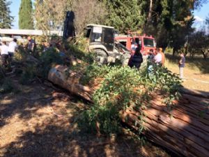 Antalya'nın Serik ilçesine bağlı Tekke İlköğretim Okulu bahçesinde mahalle sakinleri tarafından yapılan ağaç kesimi sırasında devrilen ağacın altında kalan bir kişi hayatını kaybetti.
