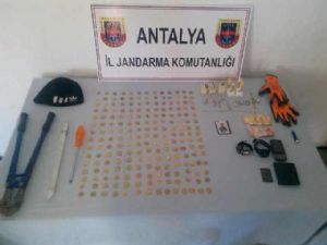 Edinilen bilgiye göre, Antalya İl Jandarma İstihbarat Şubesi ekipleri, Alanya Jandarma Suç Önleme Araştırma Unsurları (SUAK) ve İncekum Jandarma Karakol Komutanlığına bağlı ekipler tarafından yapılan operasyonda Antalya'nın Alanya ilçesi Avsallar mahallesindeki Arda Kuyumculuk'u soymaya çalışan bir şüpheli yakalandı. Kuyumcuyu soymaya çalışırken yakalanan S.U isimli şüphelinin üzerinde ve çantasında 197 çeyrek altın, 1 altın kolye, 2 altın kaplama saat, 1 altın saat kordonu, bileklik, 4 gümüş kolye, 1 gümüş bilekliğin yanı sıra soygunda kullanmış olduğu kilit kesme makası, el feneri, eldiven, levye, tornavida, bere ve malzemeleri taşıdığı sırt çantası ele geçirildi.
