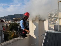 Antalya'nın Alanya ilçesinde 5 katlı bir apartmanın bacasında çıkan yangın paniğe neden oldu.