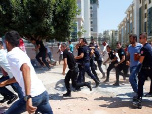 Antalya'da muhtelif zamanlarda çıkan olaylarda polise taş ve molotof atan şüphelilerin yargılanmasına bugün de devam edildi. Yargılanmalarına devam edilen tutuklulara yakınları da destek vermek için Antalya Adliyesi'ne geldi. Duruşma sonrası cezaevine sevk edilecek zanlıları görebilmek için yaklaşık 50 kişilik grup cezaevi aracı çıkışına geldi. Polis grubu cezaevi aracının çıkışını kapatmamaları için uyardı. Uyarılara aldırmayan kalabalık ile polis arasında arbede yaşandı. Tartışmanın büyümesi üzerine adliye bahçesinde bekleyen Çevik Kuvvet ekipleri gruba müdahale etti. Grup, yeni bölge adliye binası önünden polise taş atarak uzaklaştı.