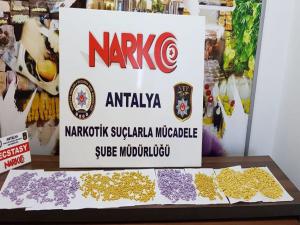 Antalya İl Emniyet Müdürlüğü Narkotik Suçlarla Mücadele Şube Müdürlüğü görevlileri, 'uyuşturucu ve uyuşturucu madde ticareti' ile mücadele çalışmaları kapsamında Kepez ilçesi Hüsnü Karakaş Mahallesi'nde şüphe üzerine durdurulan bir araçta narkotik madde arama köpeğiyle arama yaptı. Aracın gizli bölmelerine zulalanmış 6 paket halinde 2 bin 950 adet extacy hap ele geçirildi. Operasyonda M.A., E.Ş., Ş.Ö., ve M.K.M. gözaltına alındı. İşlemlerinin ardından adliyeye sevk edilen 4 şüpheli, 'uyuşturucu veya uyarıcı madde ticareti yapma veya sağlama' suçundan tutuklandı.