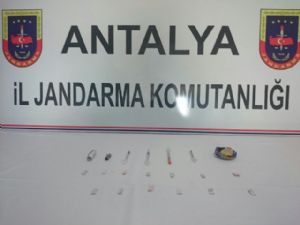 Edinilen bilgiye göre, M.S E.K. ve S.S.B isimli şüphelilerin Side Mahallesi'nde uyuşturucu ticareti yaptıkları yönündeki istihbarat çalışması sonucut İlçe Jandarma Komutanlığına bağlı ekipler, şüphelilerin ikamet ettiği yeri tespit etti.Manavgat Cumhuriyet Savcılığı'ndan alınan arama kararı ile M.S E.K. ve S.S.B'nin ikamet ettiği yerde yapılan aramada satışa hazır halde paketlenmiş 13 paket eroin, 4 adet şırınga ve 3 adet uyuşturucu içiminde kullanılan düzenek ele geçirildi.