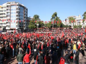 Antalya Cumhuriyet Meydanı'nda öğle saatlerinde "Teröre Karşı Birlik Mitingi" düzenlendi. Miting öncesi polis çevrede geniş güvenlik önlemleri aldı. Vatandaşlar tek tek üstleri aranarak miting alanına alındı. Saygı duruşunda bulunulup, İstiklal Marşı'nın okunmasıyla başlayan mitingde şehitlerin ruhuna dualar okundu. Antalya Valisi Münir Karaloğlu'nun da katıldığı mitingde, AK Parti, CHP, MHP'li milletvekilleri, parti il başkanları, kamu kurum ve kuruluşları temsilcileri, STK'lar, 7'den 70'e her yaştan vatandaşlar, ellerinde Türk bayraklarıyla teröre karşı bir olduklarını gösterdi.