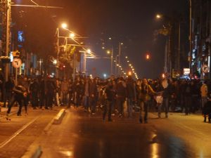 Polise taş atan gençleri uyaran kadını grup üyeleri darp etmeye çalıştı.