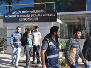 Suç örgütüne yönelik çalışmaya devam eden Antalya polisi, son operasyonunda, Y.K., L.S.A, B.A., İ.B., C.K., S.K., M.K., Ç.E ve C.C. isimli şahısları, preslenmiş 6 paket içerisinde 2 kilo 520 gram eroin ile yakaladı.