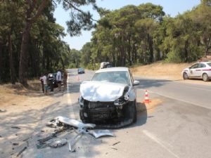 Edinilen bilgiye göre, Manavgat'ın Sorgun Mahallesinde Yıldıray Topal yönetimindeki 74 AV 484 plakalı otomobil ile Mehmet Karabaş'ın idaresindeki 07 LST 31 plakalı otomobil çarpıştı. Çarpışmanın şiddetiyle çamlığa girerek durabilen 74 AV 484 plakalı otomobilin sürücüsü Yıldıray Topal yaralandı. Topal, ambulans ile Side özel Bilgi Hastanesine kaldırılarak tedavi altına alındı.