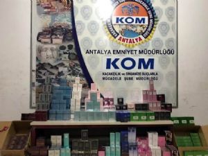 Muratpaşa ilçesi Muratpaşa Mahallesi'nde faaliyet gösteren kozmetik ürünleri satan bir iş yerine operasyon düzenleyen Antalya Emniyeti Müdürlüğü Kaçakçılık ve Organize Suçlarla Mücadele Şube Müdürlüğü (KOM) ekipleri, yaptıkları aramalarda aralarında ünlü markaların taklitlerinin de bulunduğu 9 bin 352 şişe kaçak parfüm ele geçirdi. Olayla ilgili gözaltına alınan F.K. adli makamlara sevk edildi.