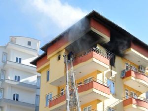 Antalya'nın Alanya ilçesinde bir apartmanın en üst katındaki dairede elektrik kontağından çıktığı tahmin edilen yangında, dubleks ev yanarak kullanılamaz hale geldi.