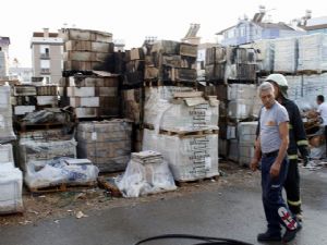 Antalya’da fayans istiflenen alanda çıkan yangın korkuttu.
