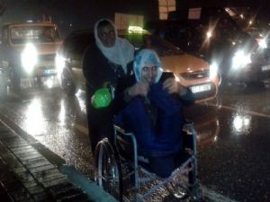 Kepez ilçesi Yeni Hal Kavşağı’nda dilencilik yapıldığı ihbarını alan İlçe Emniyet Müdürlüğü Ekipler Amirliğine bağlı dilenci timleri, harekete geçti. Kavşağa gelen ekipler, tekerlekli sandalyede oturan ve onu ittiren iki kadını tespit etti. Şahısların ilk önce normal vatandaş olduğunu düşünen ekipler, incelemelerinde tekerlekli sandalyede oturan kişinin 28 yaşındaki Cumali K. olduğunu belirledi. Kadın kılığına giren oğlunu dilendirme rolünü üstlenen anne Meryem K.(62) ise olayı gülerek karşıladı.