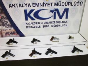 Antalya'ya, Rize'den kaçak yolla silah getirdiği ileri sürülen bir otomobile yapılan aramada, 8 tabanca ele geçirildi. Operasyon kapsamında 13 kişi gözaltına alındı.