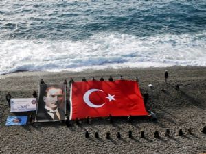 Gazi Mustafa Kemal Atatürk, ebediyete intikalinin 78'inci yılında Antalya'da Akdeniz Üniversitesi (AÜ) öğrencileri tarafından denizde anıldı.