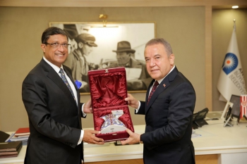 Hindistan’ın Ankara Büyükelçisi Sanjay Bhattacharyya Antalya Büyükşehir Belediye Başkanı Muhittin Böcek’e nezaket ziyaretinde bulundu. Başkan Böcek, düğün organizasyonları başta olmak üzere Antalya’ya son dönemde Hintlilerin ilgisinin yoğun olduğunu belirterek, “Ticaret ve kültür-sanat başta olmak üzere her alanda Hindistan ile işbirliği yapmaya hazırız” dedi.
