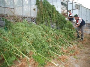 Antalya’nın Gazipaşa ilçesinde bir domates serasında hint keneviri yetiştirildiği ihbarı alan jandarma, 150 kök hint keneviri ele geçirdi.