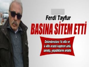 Usta sanatçı, bir çeteye 16 villa ve 6 villa arazisini kaptırdığı olayla ilgili soruları da yanıtladı. Nasıl dolandırıldığını anlatan Ferdi Tayfur, kendisini doktor olarak tanıtan şahsa güvendiğini belirterek, vatandaşları dolandırıcı çetelere karşı dikkatli olmaları konusunda uyardı. Doktor olduğunu söyleyen şahsa kimliğinden dolayı itibar ettiğini dile getiren ünlü sanatçı Ferdi Tayfur, "Bu arkadaşlar bana müracaat ettiler. Sedef hastalarının olduğunu söylediler. Sedef hastalığına iyi gelen denizli bir yerin olmasının iyi geleceğini söylediler. Hastalıklar konusunda hassasımdır. Anlayış gösterdim ve gayrimenkulü senet karşılığı verdim. Doktor olduğunu gördüm ve inandım. Bir doktor yalan söylemez, sahtekarlık yapmaz. Sonradan bunun dolandırıcı olduğunu gördük" diye konuştu.