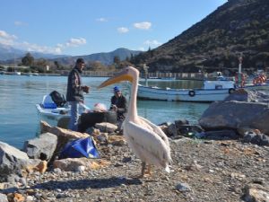 Pelikanın kendilerine alıştığını belirten Bostancı, "Çağırdığımız zaman yanımıza geliyor. Bizi görünce kanat çırpıyor. Burayı yuva olarak benimsedi. Buraya sakat olarak geldi. Balıkçıların bakmasıyla birlikte hayata tutundu. Burada sosyal bir hayat kurdu adeta. Bizler de kendisine çok alıştık" dedi.