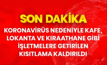 Lokanta ve Kafe Kısıtlamaları İçişleri Bakanlığı genelgesi ile kaldırıldı.