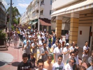 Yüzlerce esnaf Cumhuriyet Meydanı'ndaki saat kulesi önünde toplanmaya başladı. Atatürk ve Liman Caddelerindeki esnafın kepenklerini kapatmaya başladığı görüldü. Kepenk indiren işyerlerinin duvarına bu eylemin "Turistlerin alışveriş ve seçme özgürlüğü" için yapıldığını belirten İngilizce ve Rusça yazıların bulunduğu afişler asıldı. Göynük, Çamyuva ve Tekirova beldelerinden gelen esnafların da katılımıyla belediye binasına doğru yürüyüşe geçen topluluğun ellerinde, ‘Ülkemi kötüleme, insanımı kötüleme’, ‘Bırakın turisti özgürce tatil yapsın’, ‘Taşımacılığa ve hanutçuluğa son verin’, ‘Esnaf yalan söylemez, hep şükreder’ yazılı dövizler taşıdı. Grup Cumhuriyet Meydanı'ndan alkış ve ıslıklarla Atatürk Caddesi, Liman Caddesi boyunca yürüdü.