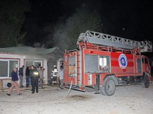 Antalya’nın Kemer ilçesinde bir mermer işleme fabrikasının yönetim ofisinde çıkan yangına bir çalışan 1 metrelik hortumla müdahale etti.