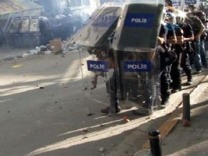 Taksim Meydanı'na girmeye çalışan polise göstericiler taş, havai fişek ve şişe atarak saldırdı.