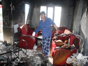 Antalya'da su sebilinden çıktığı tahmin edilen yangında bir ev kullanılamaz hale geldi. Eşyaları yanan ve elinden yaralanan ev sahibi, duvardaki Atatürk posterinin zarar görmesine üzüldü.