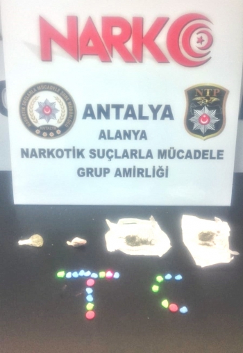 Alanya Cumhuriyet Başsavcılığı koordinesinde Alanya İlçe Emniyet Müdürlüğü Narkotik Suçlarla Mücadele Grup Amirliği ekipleri, yılbaşı gecesi uyuşturucu madde ticaretinin ve kullanımının engellenmesine yönelik çalışmalarını sürdürdü. Ekipleri yaptıkları çalışmalarda Çıplaklı Mahallesi’nde durumundan şüphe duydukları seyir halindeki plakası belirtilmeyen otomobili bir süre takip ettikten sonra durdurdu. Araçta bulunan F.A. (22), S.Ş.(22), E.A. (21) ile H.Ş. (21) gözaltına alınırken yapılan aramalarda ise 21 adet uyuşturucu hap ve 3.85 gram esrar ele geçirilirdi. F.A. ve E.A. hakkında uyuşturucu madde bulundurmak ve kullanmak suçundan işlem yapıldıktan sonra savcılık talimatıyla serbest kalırken H.Ş. ile S.Ş. de 'uyuşturucu madde ticareti yapmak' suçundan adliyeye sevk edildi.